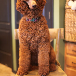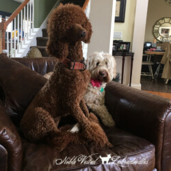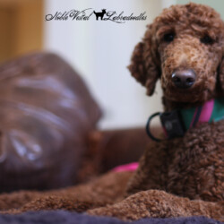 Mia is the first poodle that we have owned. We take great pride in the development of the Australian Labradoodle and understand that as a breed we have limited bloodlines and must use parent breeds introduced to existing lines to prevent inbreeding and the downturn of the breed. Mia was carefully selected to participate in our program and we look forward to the advances that we are able to achieve.