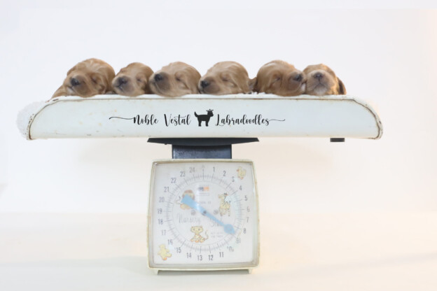This week in-leu of of a photo we have posted a live video.  Puppies have started eating Pawtree Turkey & Sweet Potato food (select large breed to get the turkey vs chicken) softened. While many breeders are anxious to remove the momma from puppies at this stage and return them to their guardians, we know how critical it is to allow our puppies to have access to their mother. This is a crucial developmental stage where puppies start to learn play behaviors like bite inhibition. Puppies who are removed from their litter and mother too early often do not learn this skill. The puppies have mastered their two step slide and are working on the wobble board and tunnel. Sensory landscape helps the puppies build confidence. Climbing, sliding down uneven surfaces, standing on the wobble board and playing in the dark tunnels are all things that help produce mentally and physically stable puppies. They have walked on nine different surfaces- carpet, hardwood, tile, grass, dirt, large gravel, fine gravel, slide, wobble board! Our goal at this age is seven.