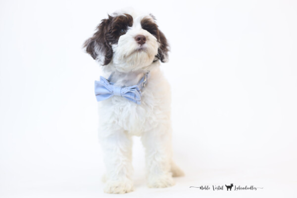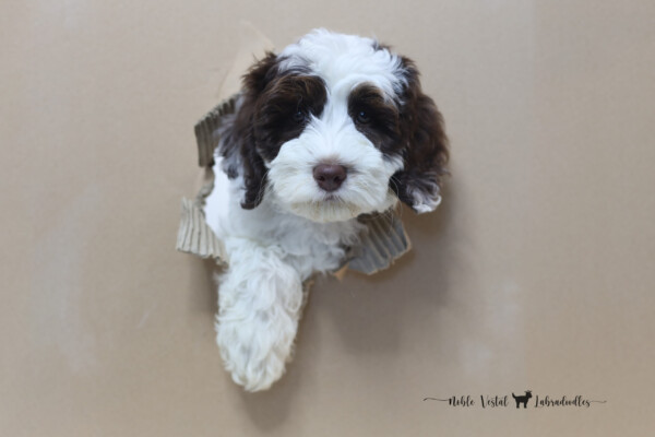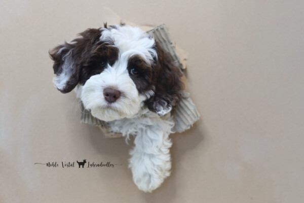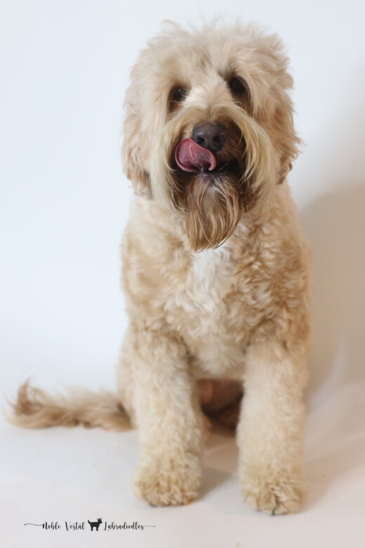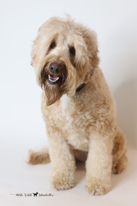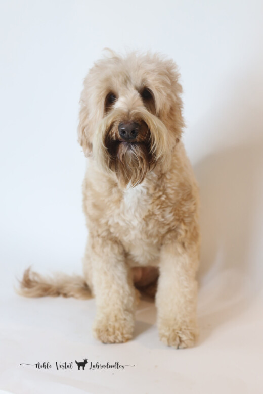 Many people would love to have a well-mannered, well-behaved dog, but do not have the time, energy, or expertise to raise and educate a puppy. We take the time and effort (and sometimes the destroyed rugs) out of educating puppies. Hundreds of hours go into educating a Noble Vestal Labradoodle, who will quickly become an important family member and give and receive love for many years. Educated Noble Vestal Labradoodles are hand selected for your family before they are eight weeks old. They are trained with your needs in mind. Booking for older trained puppies needs to be done well in advance. We have openings for 2021! Book your Educated Noble Vestal Labradoodle today.