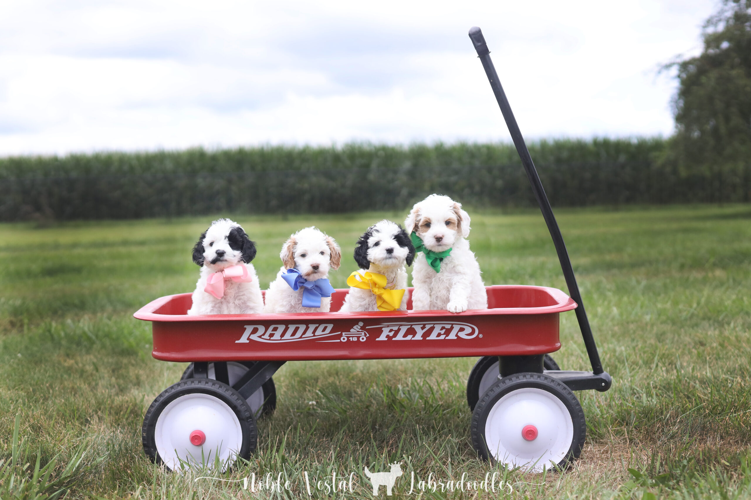 This is an incredible littler and I have to be honest. I am so sad to not be able to keep one. But I am also extremely grateful to my loyal families. This entire litter is going to stay within one family where there are already Noble Vestal Labradoodles waiting on them to arrive. This quad of fluff balls will be staying with us for training before joining their humans so, I get to love on them for several more weeks. Thank you to the Long Family for your trust and loyalty. We appreciate you!