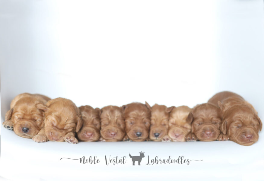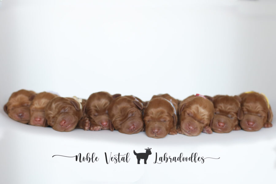 Violet is doing an excellent job in her new role as a mother. She loves her babies and does a great job managing them considering it is her first litter and it is a huge litter! The puppies are all content and only cry if I fuss with them in attempt to get their photo. When puppies are content we know they are warm enough, and getting enough food. This is always a good feeling ❤️