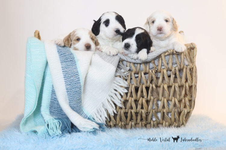 Miniature Australian Labradoodles are beloved for their gentle temperament, high intelligence, and hypoallergenic, non-shedding coats, making them a top choice for families, therapy work, or those seeking a loyal, loving companion in a smaller size. This litter is an exceptional example of the breed, showcasing the soft, fleece coats and well-balanced temperaments that Noble Vestal Labradoodles is known for.