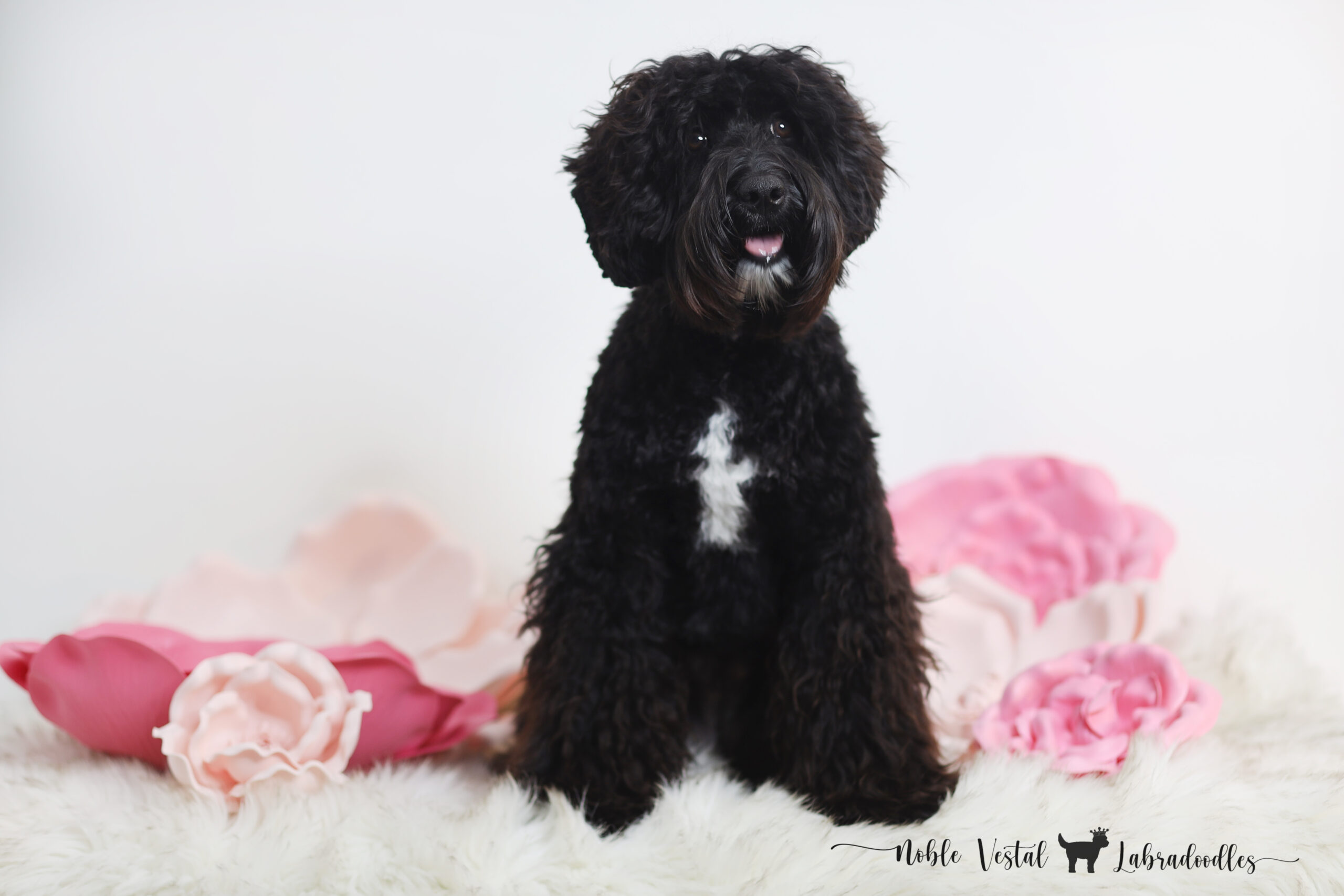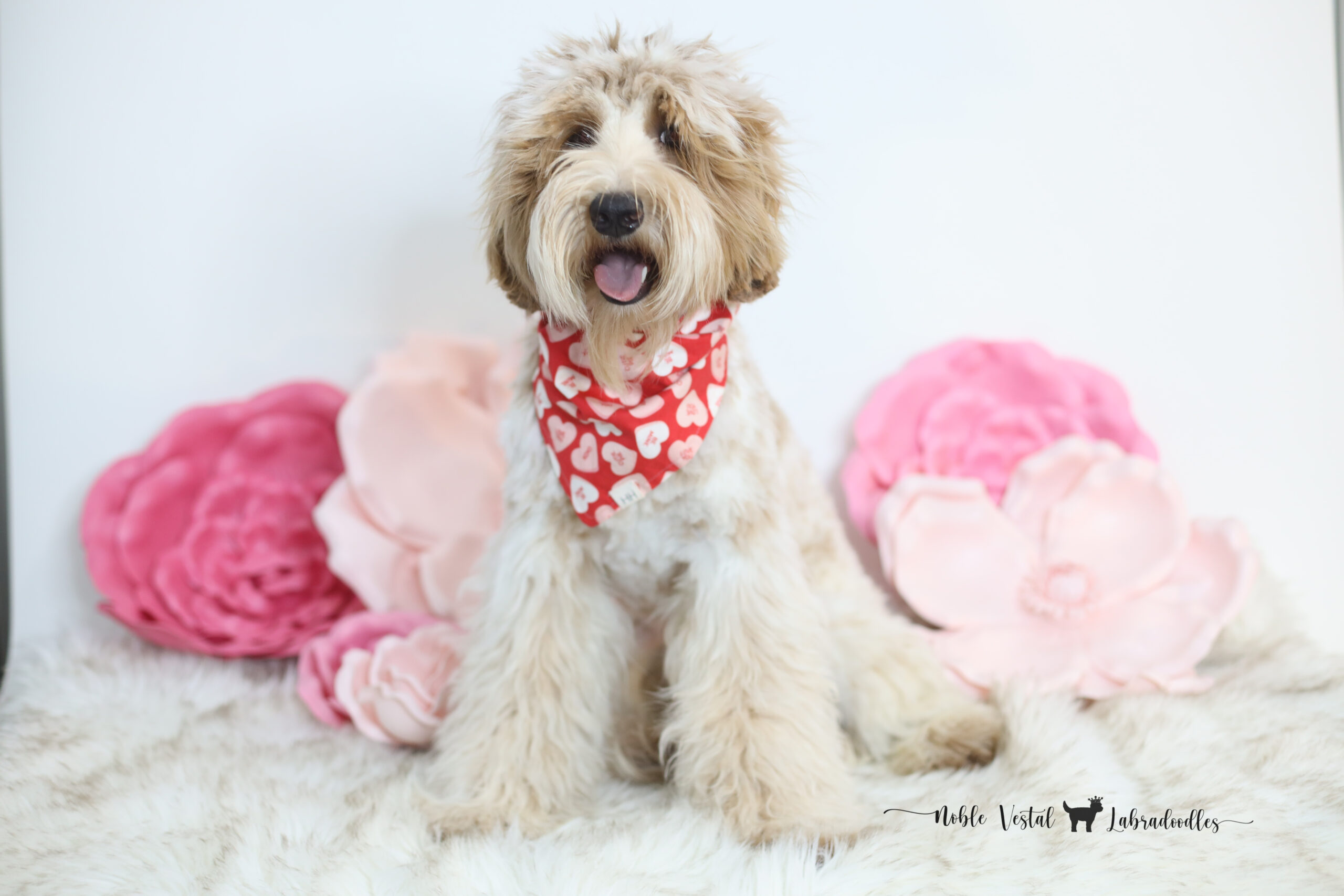 Many people would love to have a well-mannered, well-behaved dog, but do not have the time, energy, or expertise to raise and educate a puppy. We take the time and effort (and sometimes the destroyed rugs) out of educating puppies. Hundreds of hours go into educating a Noble Vestal Labradoodle, who will quickly become an important family member and give and receive love for many years. Educated Noble Vestal Labradoodles are hand selected for your family before they are eight weeks old. They are trained with your needs in mind. Booking for older trained puppies needs to be done well in advance. We have openings for 2021! Book your Educated Noble Vestal Labradoodle today.