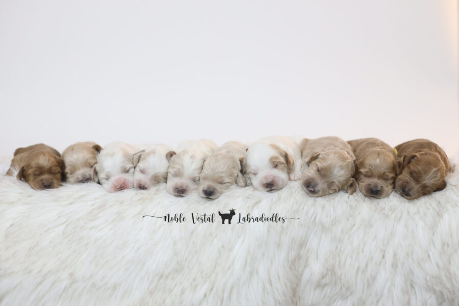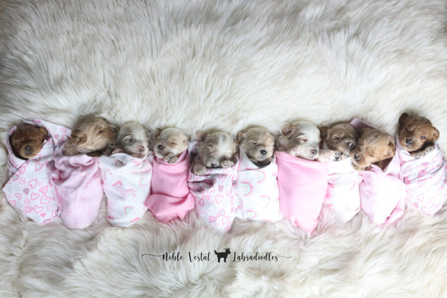Bri is featured below in photos from Birth through week 6 as Lavender Girl and in photos as the second puppy from the left.