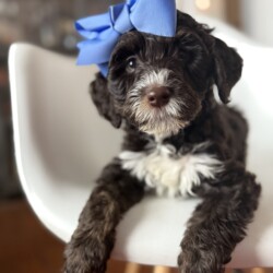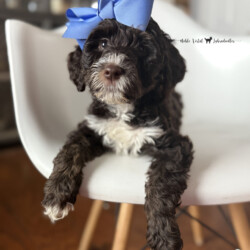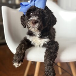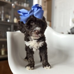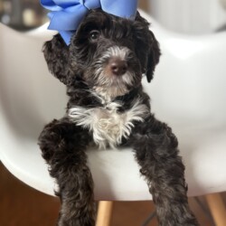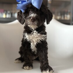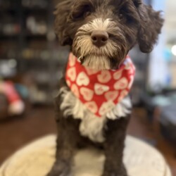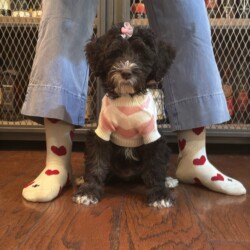 Coco is a fantastic little girl. Her favorite current activities are bouncing, exploring and snuggling. Who could possibly ask for more from a companion. She has started training and is doing a great job learning her foundation skills. She walks great on leash and is learning: sit, sit stay, down, down stay, come, leave it, place, by-heel, automatic sits on stop.
