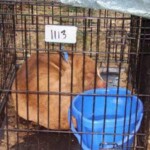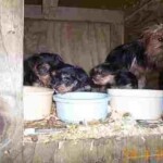 There were several small shack like out buildings. I walked up to the door and knocked, no one answered but I had called 5 minutes prior so they knew I was there. I opened the door leaning inside to say Hello; looking around there were empty cages everywhere and bags of Purina stacked 10 or more bags high, empty bags and other trash scattered on the floor. I backed out and at that point still hadn’t grasped that I was standing in a puppy mill. Back out on the porch I called the breeder to alert them that I was there, looking up I was faced with 2 dobermans not looking very happy, I later learned that they were nice. The breeder’s husband came out and directed me into the house through another door. I entered a room with a desk, sofa, 2 recliners, a TV, door covered with bed sheets and walls lined with dog crates stacked from floor to ceiling, wall to wall, filled with filthy dogs.