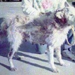 I spent many days just crying with sadness because I couldn’t believe that someone would have mistreated this poor dog and damaged his soul. I remember standing at the door for 3 hours while he stood in my back yard not allowing me to get near him; he stood in the cold November rain and shivered. He wanted to come in so badly but was too afraid. I stood inside the kitchen soaking wet crying and begging him to come in. I pulled out cheese, hamburger, ice cream, steak; I made a trail of food from the yard into the house and he wouldn’t touch it. Night fell on us and I dried off and changed clothes but he still wouldn’t come in the house. I finally had to get a bed sheet and with my husbands help cornered him and tossed the sheet over him.