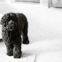 Murphy is a full standard but does not have a heavy foot print, he is a gentle giant!