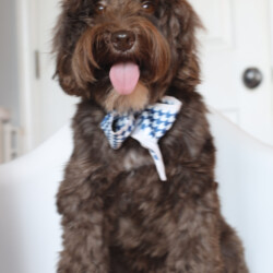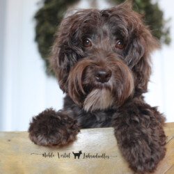 Fizz is our handsome miniature Australian Labradoodle stud, known for his gorgeous chocolate fleece coat that gives him the look of a tiny teddy bear. Athletic, fun, and endlessly sweet, Fizz has a playful, silly side that charms everyone he meets. He loves his toys, enjoys being held, and has a gentle temperament that makes him a joy to work with. As part of our breeding program, Fizz brings exceptional structure, intelligence, and a loving nature to his puppies.. carrying forward the best traits of the Australian Labradoodle breed. His lineage traces back to some of the greatest Australian Labradoodles produced by the founders of the breed.