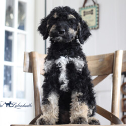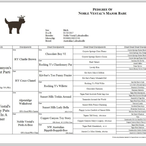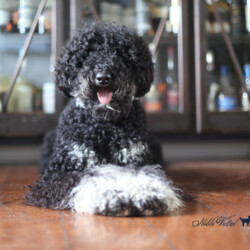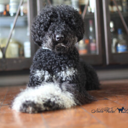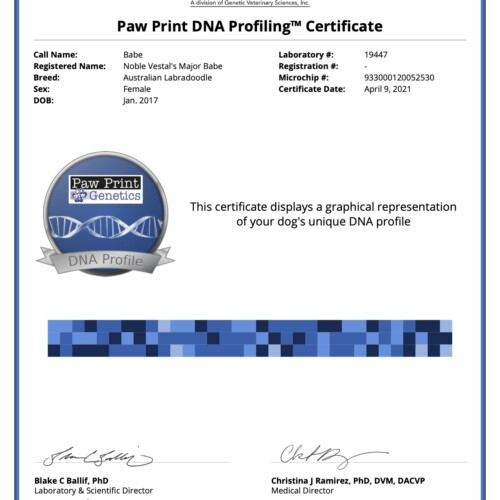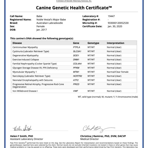 Major Babe is not only good looking but she is fun and sweet! She embodies the Labradoodle breed standard of being happy go lucky, outgoing, loves attention, athletic, huge fan of cuddling and wicked smart.