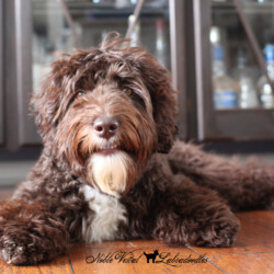 We strive to produce Australian Labradoodles who are happy go lucky, socially outgoing and love to be around people. We got it right with Toast! Toast loves life and everything about it! She has an infectious smile and a tail that never stops wagging. Everyone’s favorite dog when they visit is Toast! Toast is my constant sidekick following me everywhere I go. Toast makes friends wherever we go and with everyone she meets.