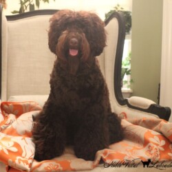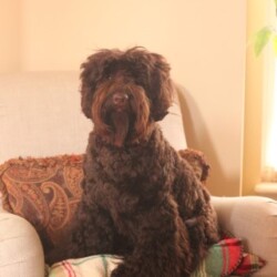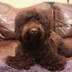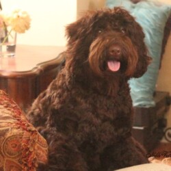 She lives with her guardian family where she is their constant shadow and a playmate to their other Noble Vestal Labradoodle, an old lab and two almost teenage children and their friends. She loves to goof off and play games!