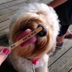 Wheatie is one of the most fun dogs to know! She can shake hands (left or right paw on request), high five, wave, crawl, bow, play peek a boo and even skateboard! She is currently working on agility with our 6 year old son.